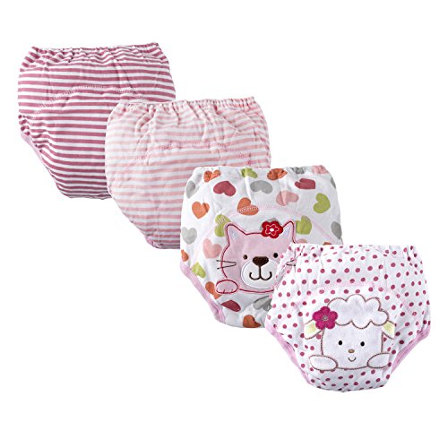 (ビッグエレファント) Big Elephant ベビー用 女の子 下着 可愛い バーパターン ひつじちゃん ワンちゃん ベビーパンツ ブリーフ 四色セット 90 100 110 6-12ヶ月 B78