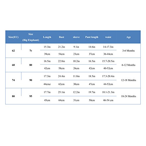 お買い上げになる前に必ず寸法表をしっかりお読みになってください。寸法表は平置き寸法ですので、生地の伸縮性により1-3CMの誤差が生じますが、これは品質問題ではありません。赤ちゃんの体型と成長状況によってフィット感が異なりますので、あらかじめご了承ください。