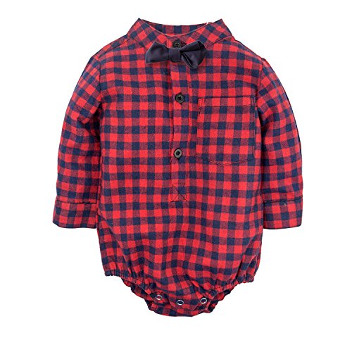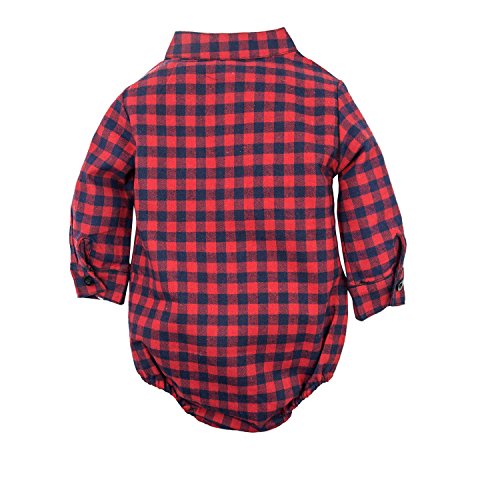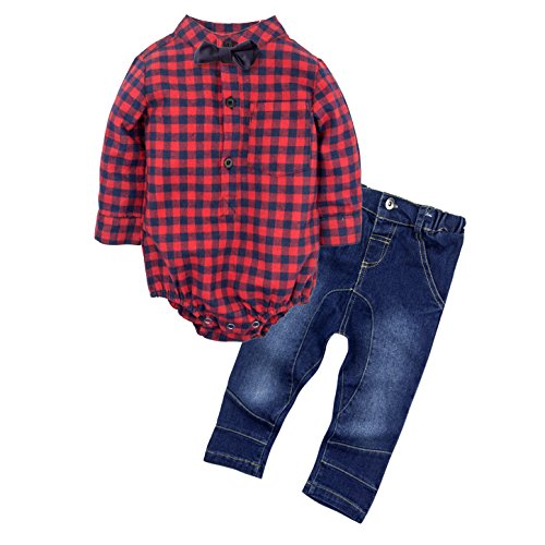 (ビッグエレファント) Big Elephant 2点セット男の子長袖赤色チェック柄シャツとデニムパンツのセット G24 (80)