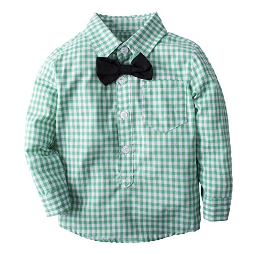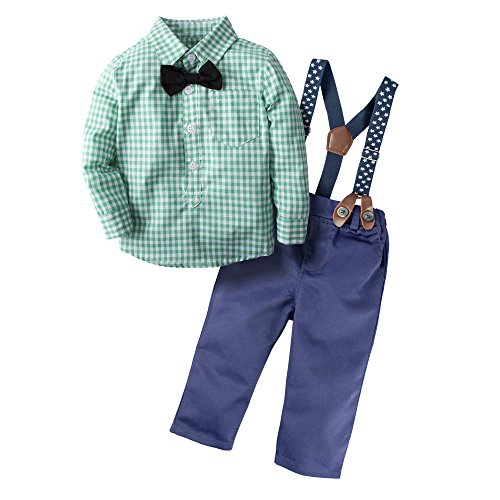 (ビッグエレファント) Big Elephant サスペンダーシャツ& ズボン パンツ 上下セッ 襟付き 3枚セット セットアップ タータンチェック 男の子 3-24ヶ月 H03 (3-6ヶ月, 緑)