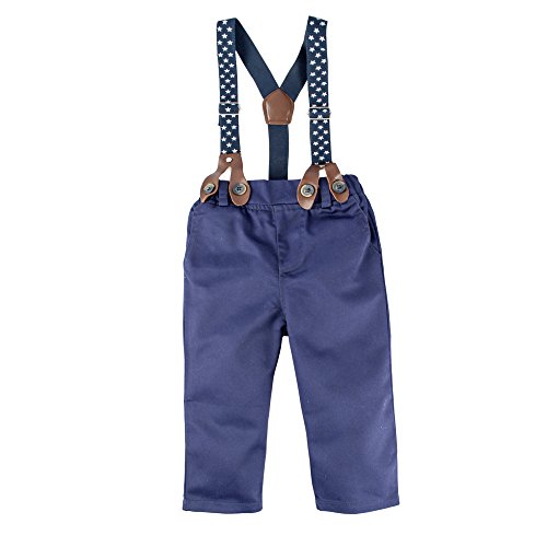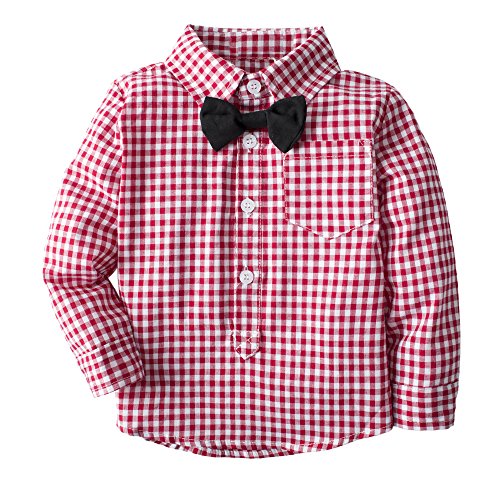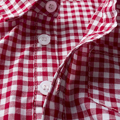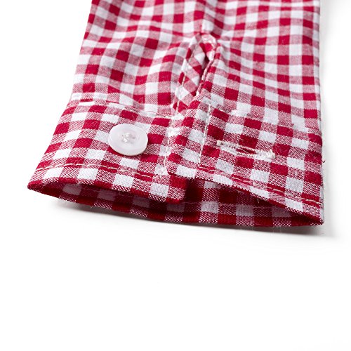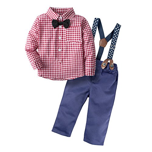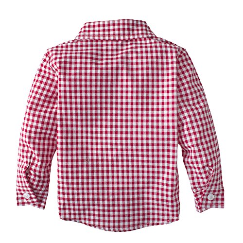 (ビッグエレファント) Big Elephant サスペンダーシャツ& ズボン パンツ 上下セッ 襟付き 3枚セット セットアップ タータンチェック 男の子 3-24ヶ月 H03 (3-6ヶ月, 赤)