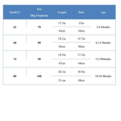 お買い上げになる前に必ず寸法表をしっかりお読みになってください。寸法表は平置き寸法ですので、生地の伸縮性により1-3CMの誤差が生じますが、これは品質問題ではありません。赤ちゃんの体型と成長状況によってフィット感が異なりますので、あらかじめご了承ください。