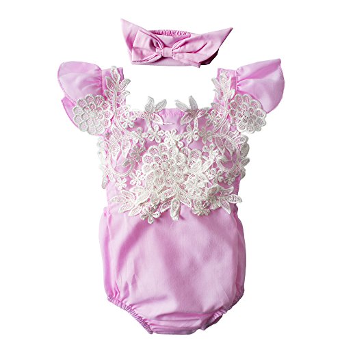 (ビッグエレファント) Big Elephant女の子用ロンパース半袖正規品ボディスーツロンパース ボーダー柄 ピンク&ヘッドバンド2枚セット 3-24ヶ月 J01 (12-18ヶ月)