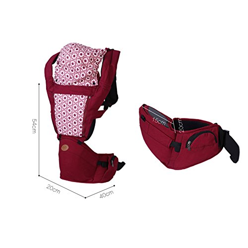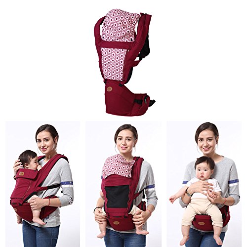 - BINGONE Comfortable Breathe Freely Style Multi-function Soft Toddler Baby Carrier with Wood and Sun Shade Red