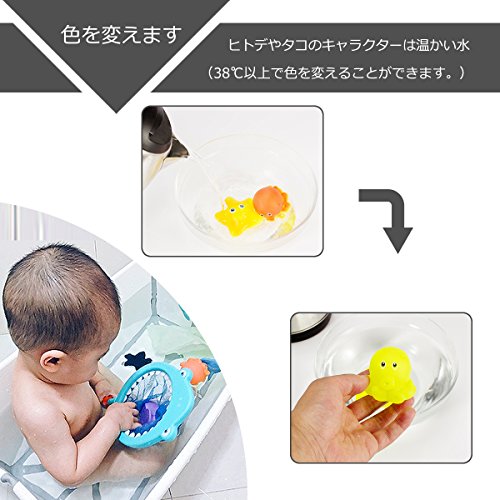 - 【多種多様】かわいい釣りゲームのおもちゃは水に浮かぶことができ、押し出すと水を撒くことができ、シーライオンとタコのキャラクターはかわいい音を出すことができ、ヒトデやタコのキャラクターは温かい水(38℃以上で色を変えることができます。
