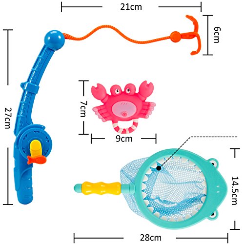 - 【豊かな色と適切なサイズ】カラフルな色で、お子様の注意力を引き、色彩感覚にも良い影響を与え、赤ちゃんの両手が握ることができる理想的なサイズです。(釣り竿の釣り糸の長さは調節できません)赤ちゃんが入浴中に釣りの楽しさを体験してみましょう。