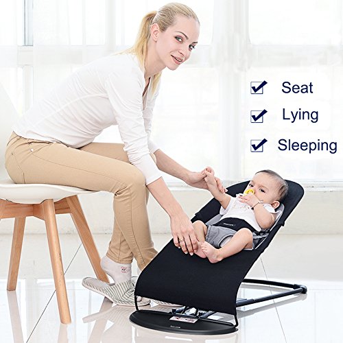 - 4 POSITIONS: Play, rest, sleep, and transport. The bouncer is quietly and easily adjusted to cater to baby’s needs on a whim and can also be folded flat for easy storage and portability. Once your child can sit without help, turn fabric seat around and bouncer doubles as a chair