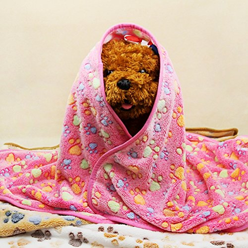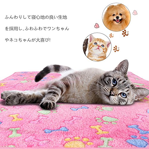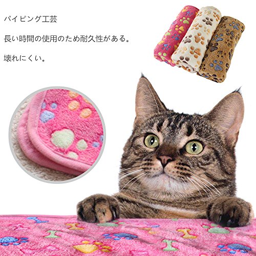 - 【3枚セッ】3色セット、可愛い猫の足跡です。柔らかいサンゴフリース素材を使い、表面の手触り感じが良くて、ペットの肌にも優しいです。ペット大好きなブランケットです。