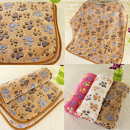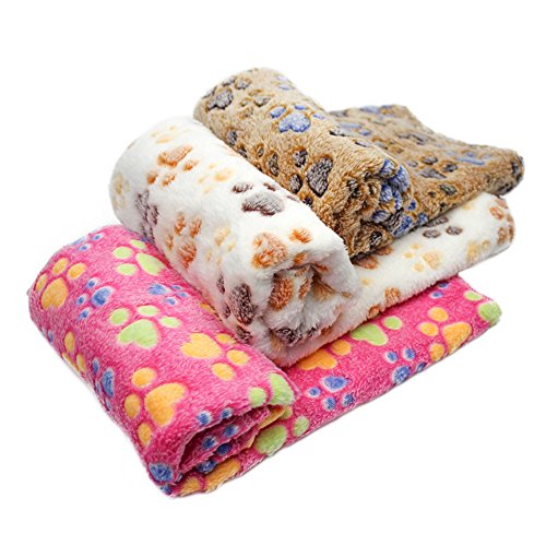 ペット ブランケット 毛布 犬猫ペット用 マット タオル ソフト サンゴフリース 秋冬の防寒 洗える 可愛い猫の足跡 四季適用 3色セット3枚セット76*52cm)