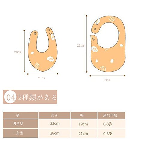 - サイズ:三角型:28*21cm、四角形:33*21cm セットの内容:4種類の柄のよだれかけ4枚。