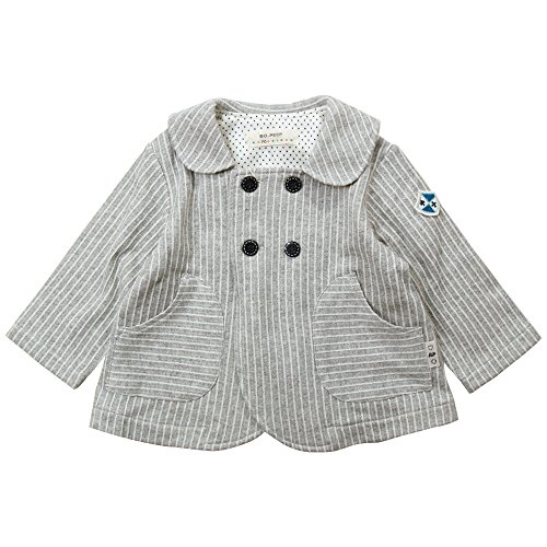 《春夏対応》(日本製) BO-PEEP(ボーピープ) 裏毛ストライプワッペン付裏毛長袖ジャケット 80cm /GY NO.DP-71709