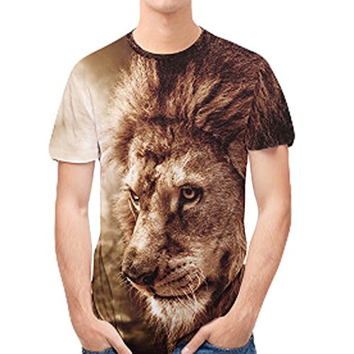 tシャツ BOBOGOJP メンズ 半袖 上着 3Dプリント おもしろ ライオン 狼 プリントTシャツ 吸汗速乾 着心地いい 春夏服 彼氏 プレゼント (L, ライオン)