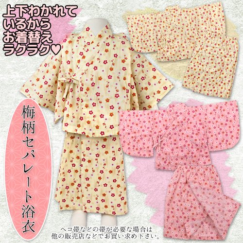 上下別々だから お着替え簡単 梅柄 セパレート浴衣 ※帯は別売りです※ 90cm/95cm 95 ピンク系