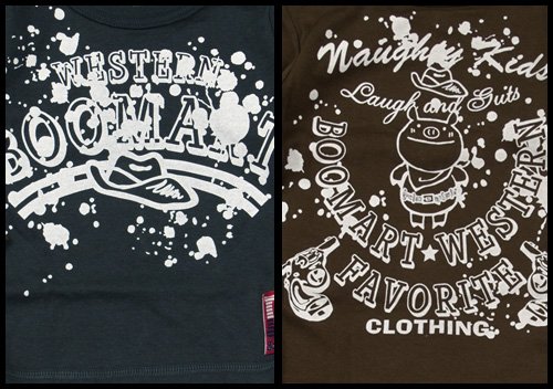 超人気Boo Mart(ブーマート)ブランドのウエスタン長袖Tシャツ 左肩にホックもついていて脱ぎ着もさせやすいしGOOOOD 前後のプリント柄が違う着まわし易いシンプルなTシャツです(*^0^*) しっかりめのTシャツ素材で通気性と吸水性抜群です。 色はグレーとブラウンの2色展開 サイズ: 80/90/95 カラー: グレー/ブラウン 素材: 本体・綿100% リブ・綿95%ポリウレタン5% 原産国: 中国