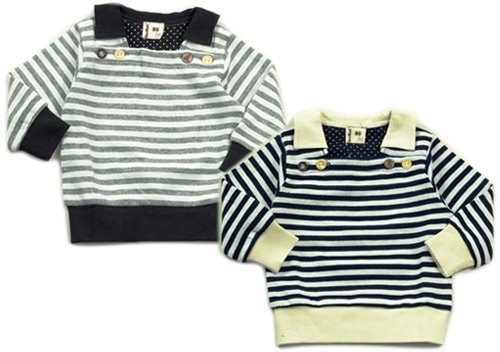 ブーマートの襟がかわいいマリンボーダー長そでTシャツです 独特なボタン使いはもちろん、襟がとってもCUTE☆ 色はダークネイビーとグレーの2色展開 サイズ: 80/90/95 カラー: ダークネイビー/グレー 素材: 本体・綿100% リブ部分・綿95%、ポリウレタン5% 原産国: 中国