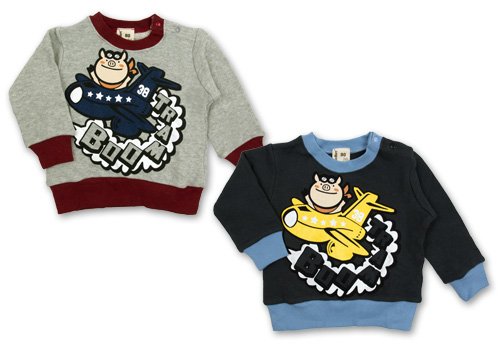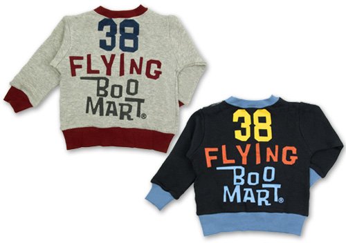 超人気ブーマートの両面プリント裏毛トレーナーです。 裏糸がタオル地のようにループ状になっている裏毛綿使用 左肩のスナップボタンで着脱ラクラク☆ 前身ごろはBOOが飛行機に乗っているかっこいいプリントでその周りにはロゴが 後もかっこいい英語プリントつき☆ お色は杢グレーとダークグレーの 2色展開 サイズ: 80cm/90cm/95cm カラー: 杢グレー/ダークグレー 素材: 本体・綿100% リブ・綿95% ポリウレタン5% 原産国: 中国