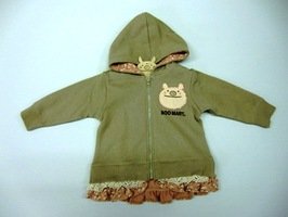 超人気ブーマートのアップリケ刺繍がとってもCUTEな裏毛の裏起毛パーカーです お肌に触れる面はふわふわの起毛でベビーちゃんもあったか☆ 前中央全開ファスナーで着脱ラクラク☆ 裾にトーションレースと小花柄プリント生地でフリルに仕上げてとってもCUTE☆ フード裏にも小花プリント生地が使用 前身頃のブーマートロゴはプリント。 お色はベージュと杢グレーの2色展開 サイズ: 80cm/90cm/95cm カラー: ベージュ/杢グレー 素材: 本体・綿100% リブ部分・綿95%、ポリウレタン5% 原産国: 中国