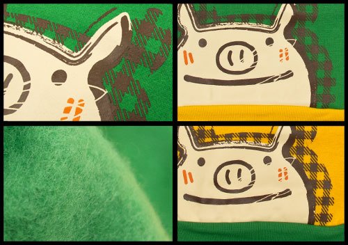 (ブーマート)BOO MART 2015 チェック柄シルエット BOOプリント 起毛トレーナー 80cm グリーン