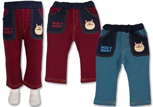 (ブーマート)BOO MART 2015 BOOプリント 細ボーダー柄 ポケット付 パンツ 80cm ブルー