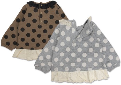 (ブーマート)BooMart 【BooMart】ブーマート 裾シフォン 水玉チュニック 長そでTシャツ 80cm/90cm/95cm 95 グレー