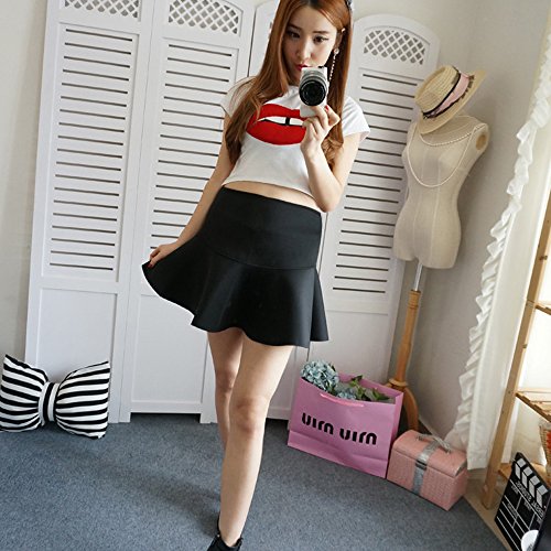 BOZEVON 女性マタニティハイウエストカジュアルラインプリーツスカート、ミニスカート、調節可能ウエストバンド (ブラック,L)