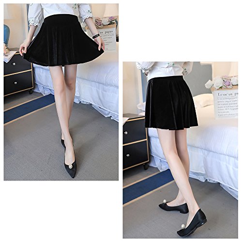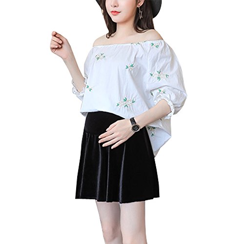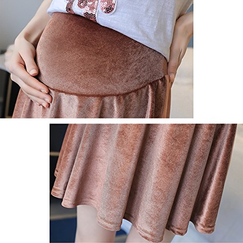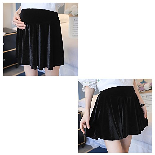 BOZEVON 女性マタニティルースプリーツスカート、妊娠カジュアルショートスカート、Aラインスカート (ブラック,L)