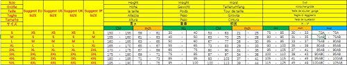 2XL 身長:170-175cm 体重:65-75kg ウエスト:80-90cm ブラジャー:95-105cm 85AB-90AB