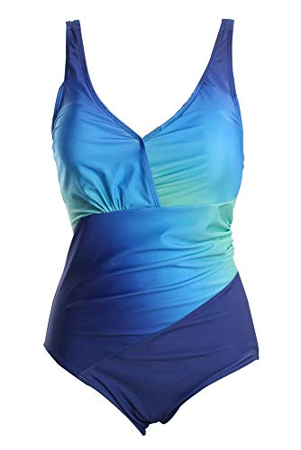 BOZEVON 水着 レディーズ クラーデション キャミソール vネック マタニティ水着 妊婦水着 ママ水着 ワンピース水着 産前産後 ブルー L