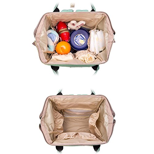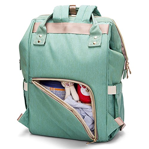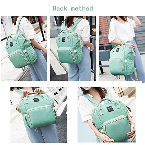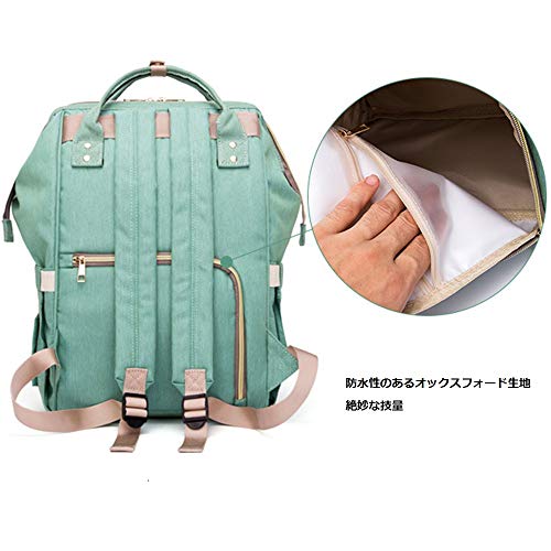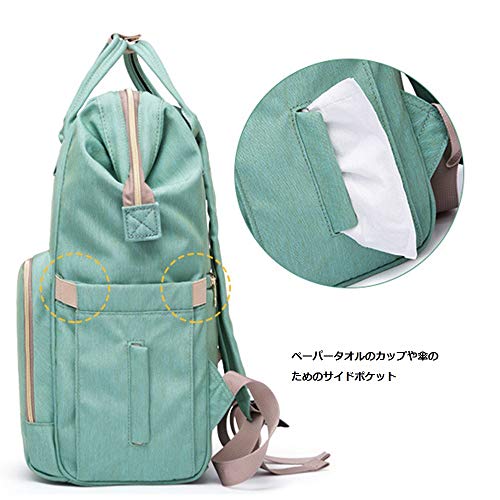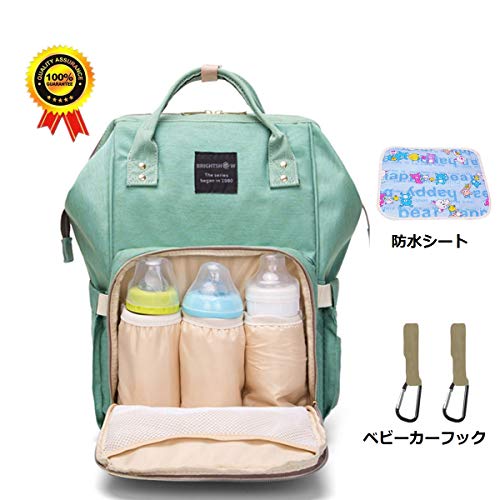 BRIGHTSHOW マザーズバッグ マザーズリュック ママバッグ 大容量 多機能 おしゃれ 盗難防止ポケット 保温ポケット付き 出産準備 お出産祝い 旅行 花見 含む ベビーカーベルト+ 隔尿垫 (グリーン+隔尿垫)