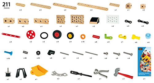 ・ブリオビルダーは、パーツを手に取って子供の感性や創造力のままに組み立てて遊ぶ、ユニークな木製組立玩具です。<br> ・木製パーツに、プラスティックパーツが加わり、さらにスパナ、ペンチ、ハンマー、ドライバーの工具が付属。<br> ・インスピレーションブックもついているので、初心者でも安心!