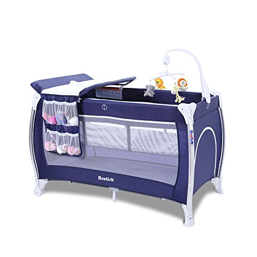 プレイヤード 折りたたみベビーベッド 航空級アルミニウム合金素材 BROTISH ベビーサークル 転覆防止 オムツ交換台等4大付属品付(ネイビー)