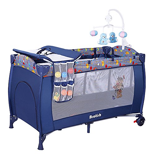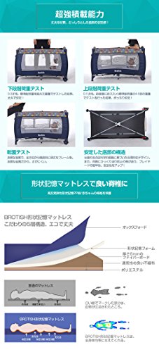 プレイヤード ベビーベッド 折りたたみ BROTISH ベビーサークル 転覆防止 オムツ交換台等4大付属品付き マットレス付き (ネイビーブルー)