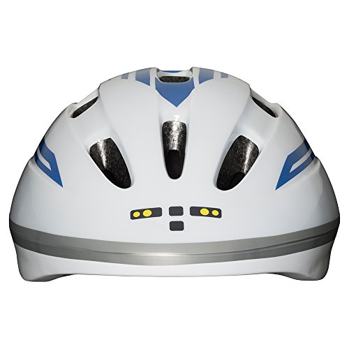 幼児から使用できる軽いヘルメットです。 ヘルメット後部にリフレクターが付いているので、ライトに反射して目立ちます。