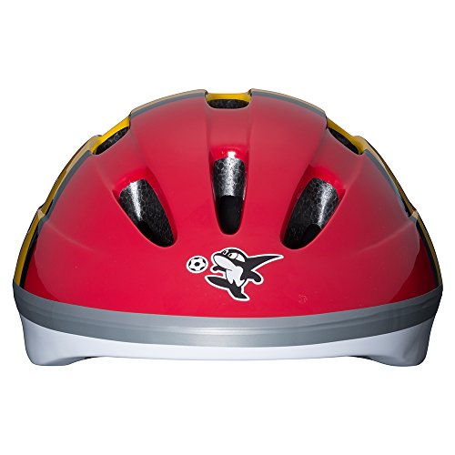 幼児から使用できる軽いヘルメットです。 ヘルメット後部にリフレクターが付いているので、ライトに反射して目立ちます。