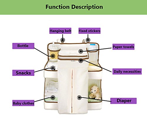 バッグの上に2つのストラップがあり、ベビーベッドの上に簡単に掛けることができます。 丈夫なポケットを備えた9個の収納コンパートメントは、電源に簡単にアクセスできます。