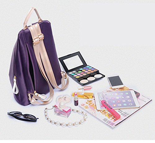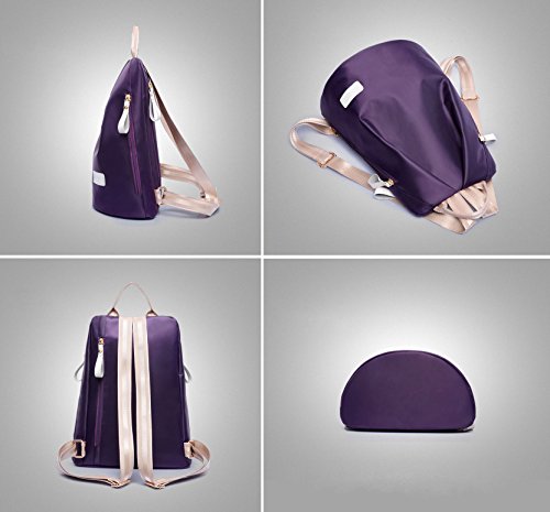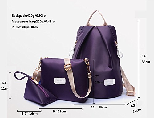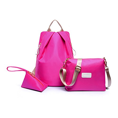 カジュアルナイロンバックパックショルダーメッセンジャーバッグ旅行軽量バックパック+ショルダーバッグ+財布 (ローズレッド)