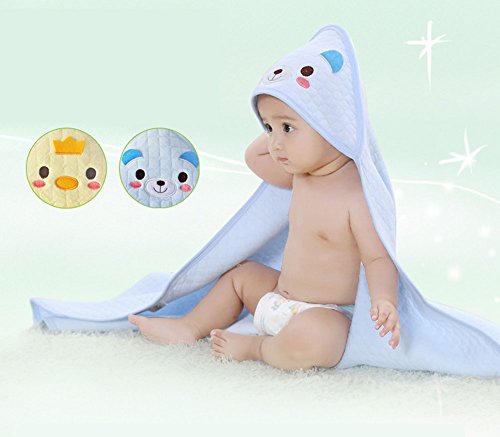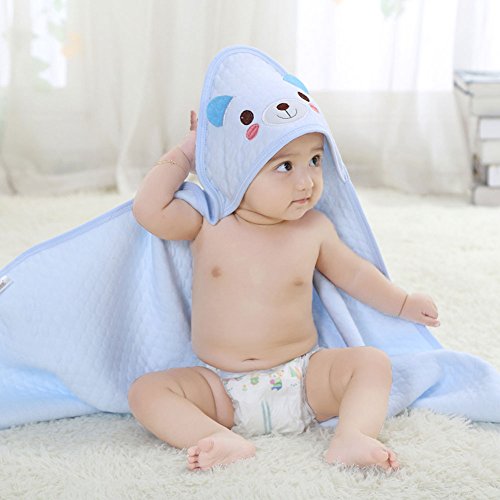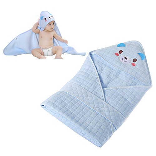 BSTcentelha 愛らしい動物の友人が織りテリーフード付きベビータオル赤ちゃんの毛布に直面します (青)