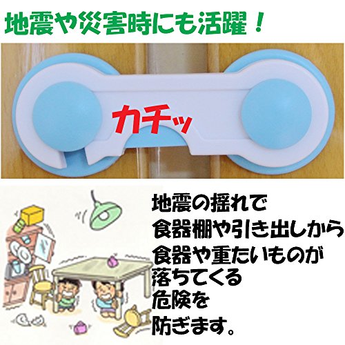 BTC ベビー ガード ストッパー ワンタッチ 回転式 防災 ドアロック 引き出し 戸棚 引き戸 いたずら防止 (ブルー 12個)