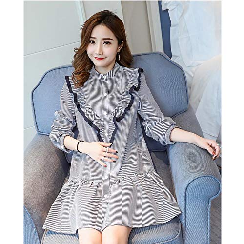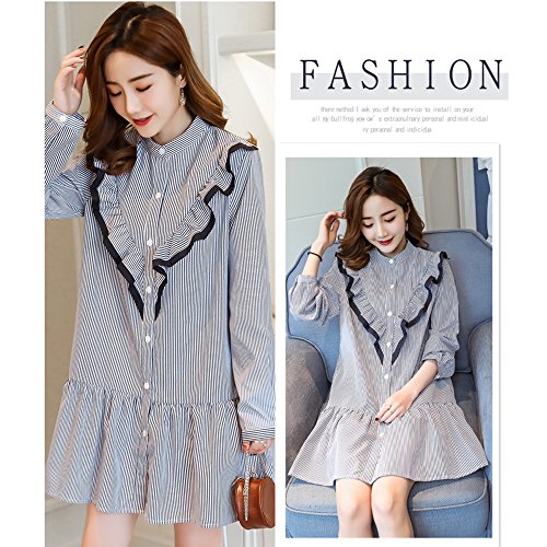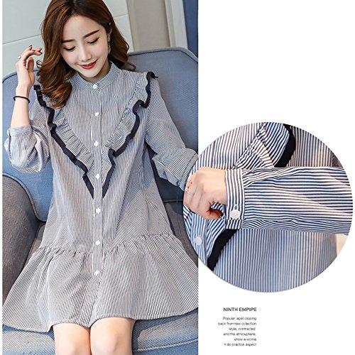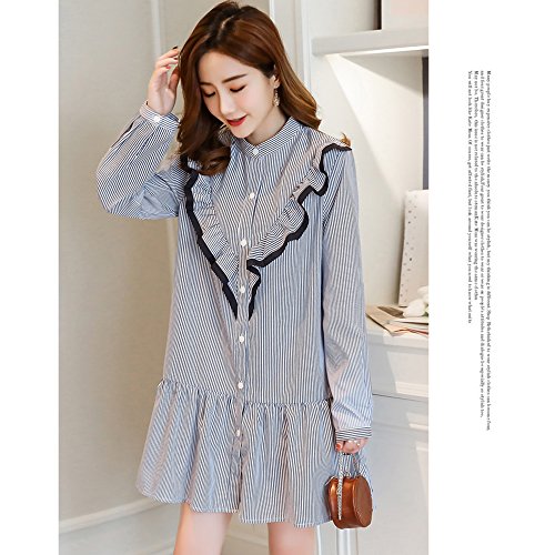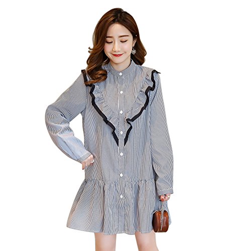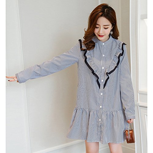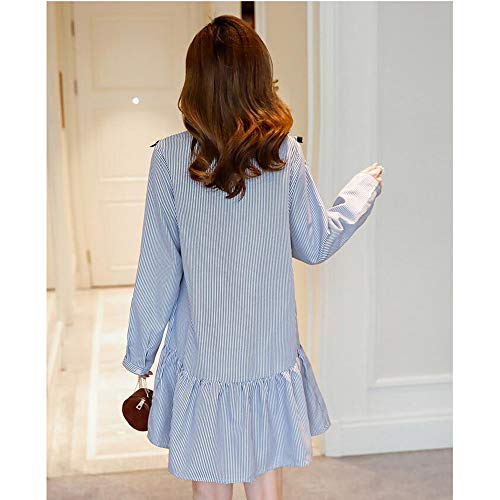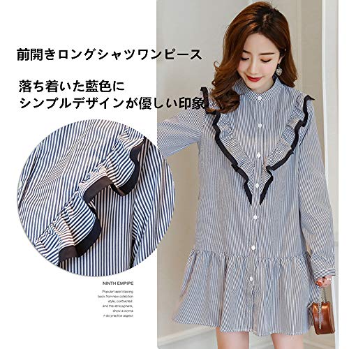 マタニティー 授乳服 ワンピース 妊婦服 スカート レディース 細見え 着痩せ 可愛い長袖 オフショルダー ストライプ柄 ボタン前開き フォーマル 通勤 お宮参り 春夏 M L XL XXL ブルー (XL)