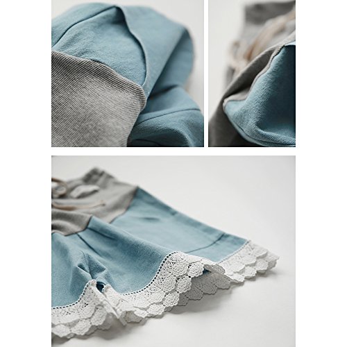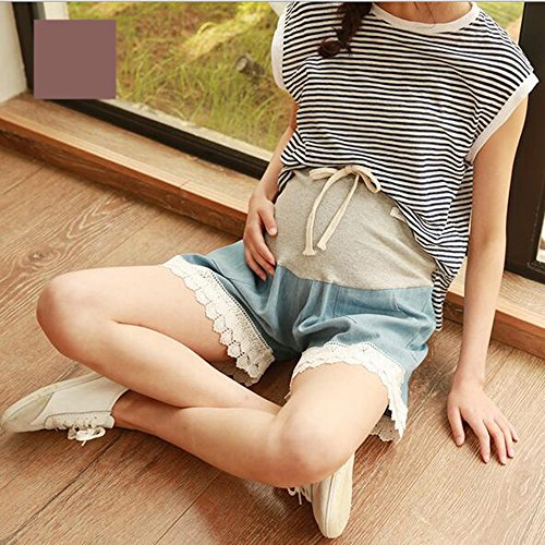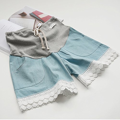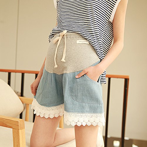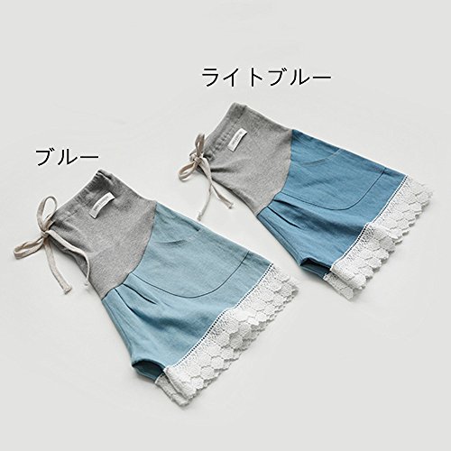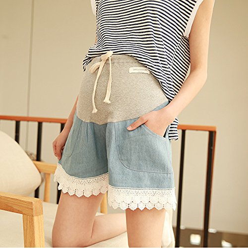 マタニティー ショットパンツ 妊婦ズボン ショート丈 ボトムズハイウェスト楽チンかわいいルームパンツ 大きいサイズ お出かけ おしゃれ サイズ調整可 (L, ライトブルー)
