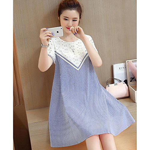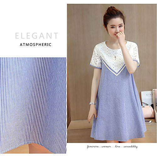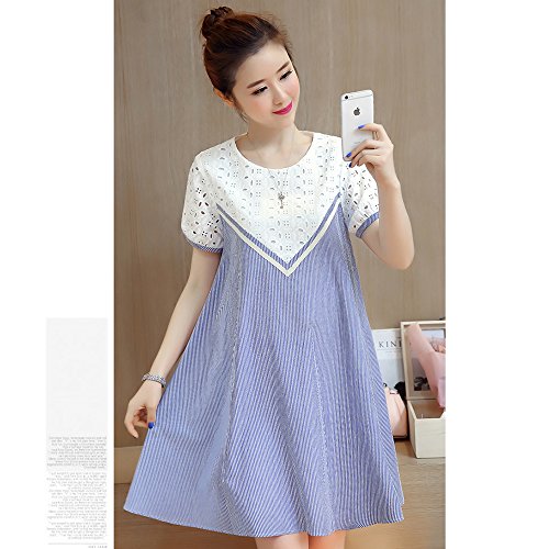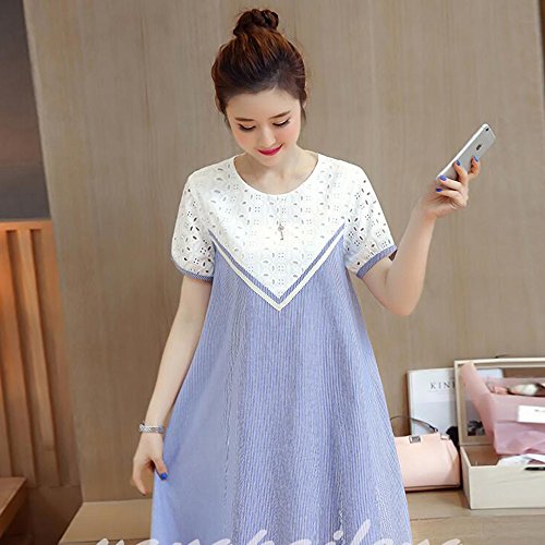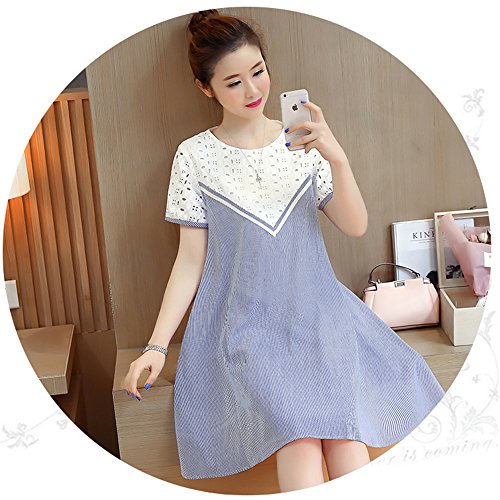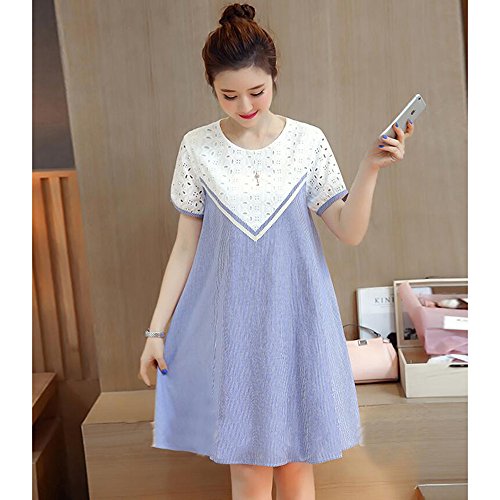 マタニティワンピース レディース ワンピ 半袖 チェックストライプ 無地 ゆったりAラインシルエット (XL, ストライプ)