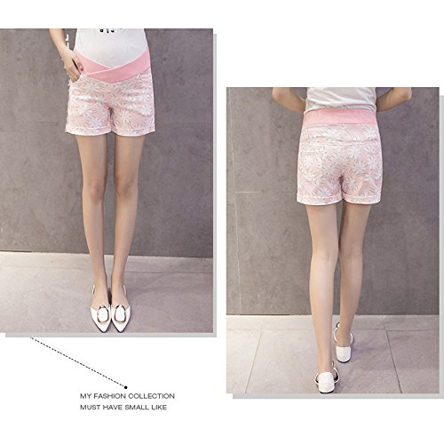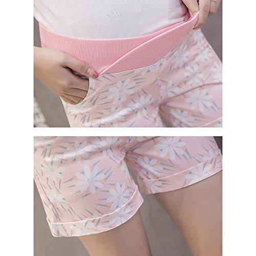 マタニティ パンツ ショートパンツ レディース 妊婦 ゆったり 夏 花柄 ローライズ オフィス 通勤 部屋着 妊婦用 産前産後OK 大きいサイズ ポケット付き (M, ピンク)