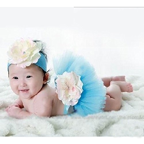 ベビー用チュール フラワーデザイン ヘアバンド付(ライトブルー)