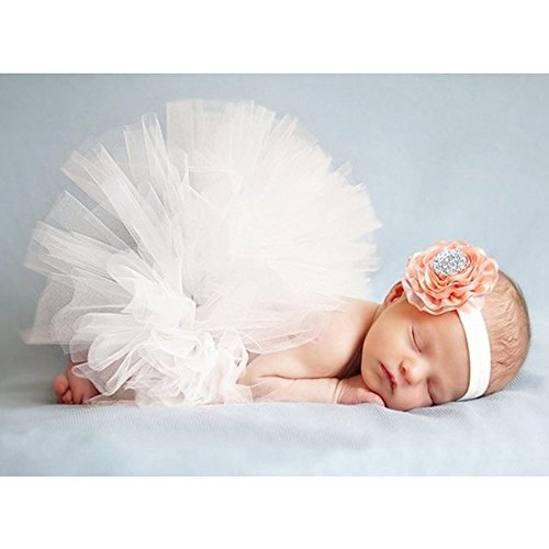 ベビー用チュール フラワーデザイン ヘアバンド付(ホワイト1)