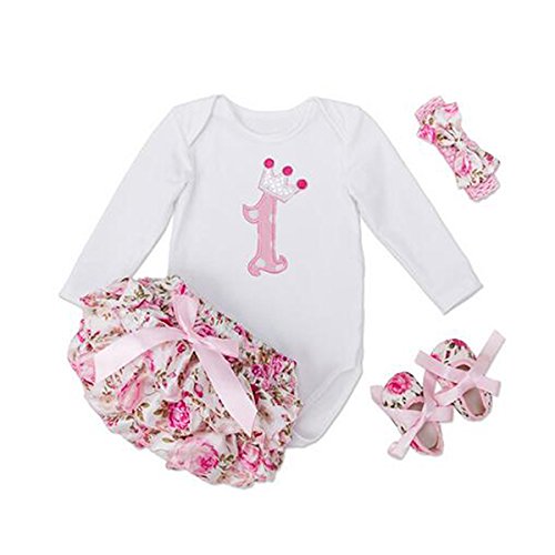 子供ドレス 女の子ワンピース 長袖ロンパースチュチュスカート リボン飾り 4点 セット赤ちゃんの女の子の誕生日パーティーの服 かわいい (1歳, S)