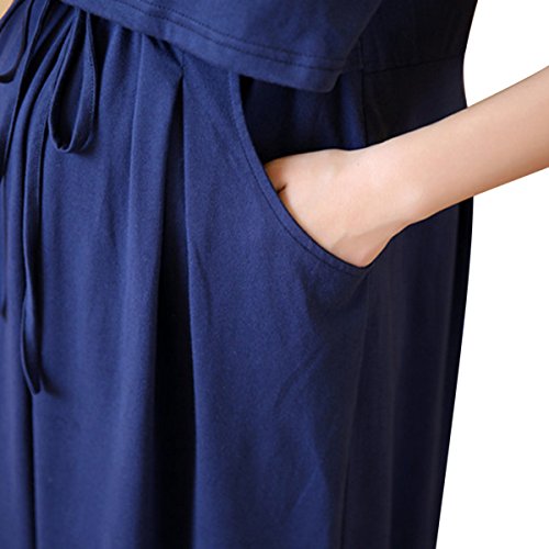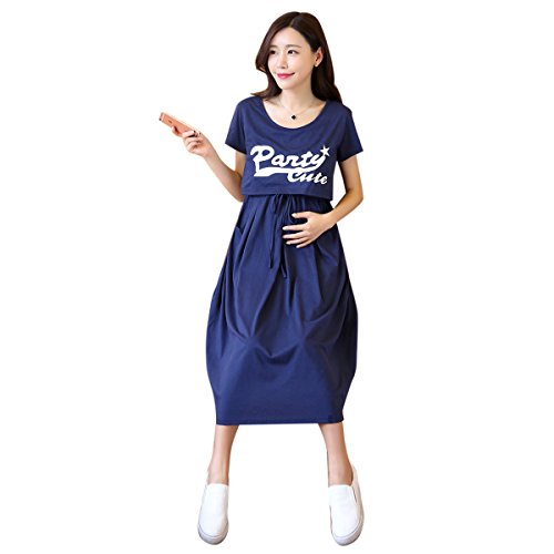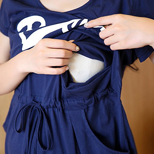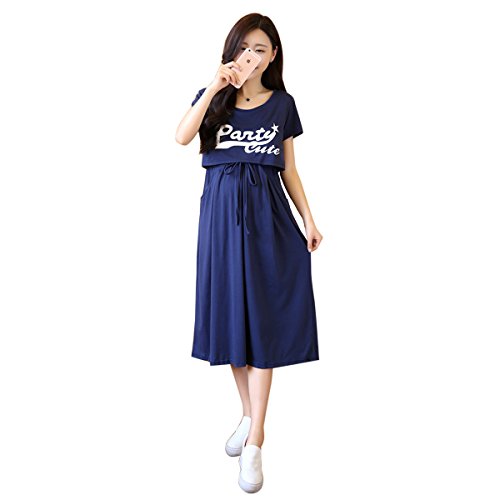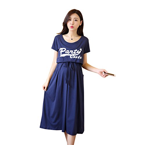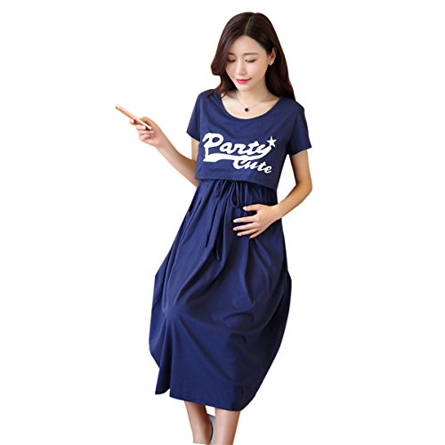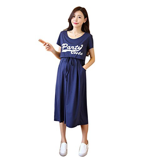 授乳服 マタニティ ワンピース 授乳口付き 春 夏 楽々出産祝い (XXXL, ネイビー)