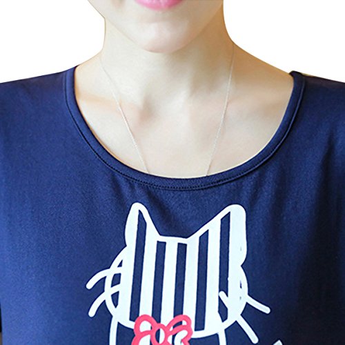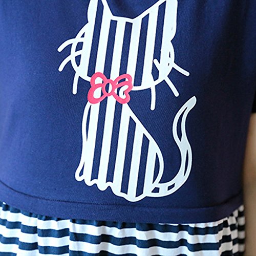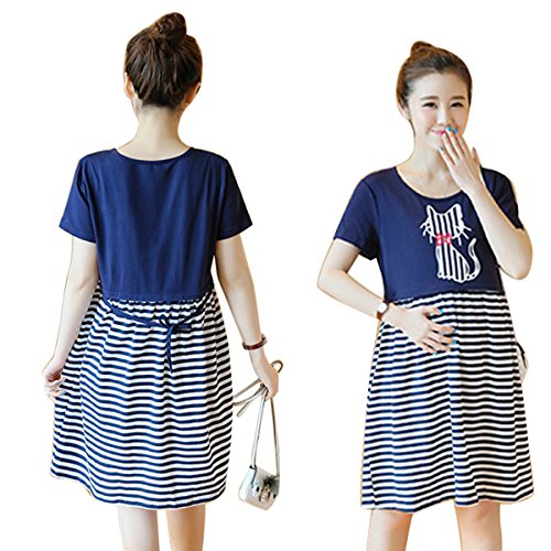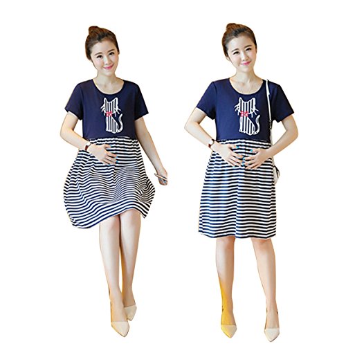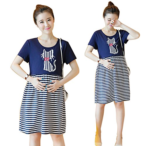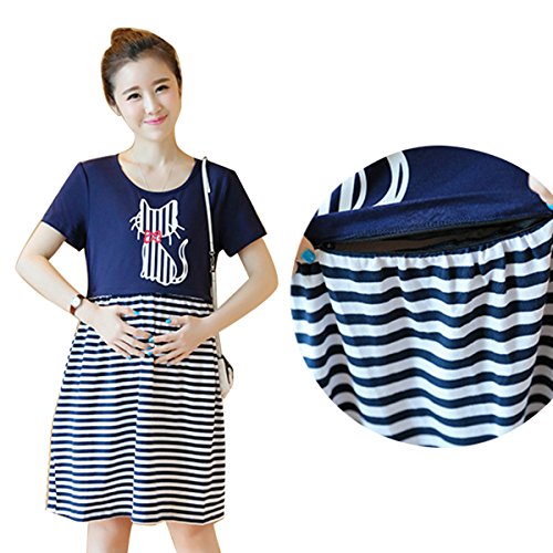 授乳服可愛いマタニティ ウェア ワンピースレディース ボーダーネコデザイン授乳口付きファスナー (XL)
