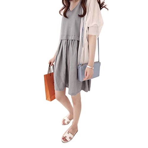 授乳服可愛いマタニティ ウェア ワンピースレディース 授乳口付き [服を 着たまま 簡単 授乳] 赤ちゃん との 外出に! マタニティウェア (XL, グレー)