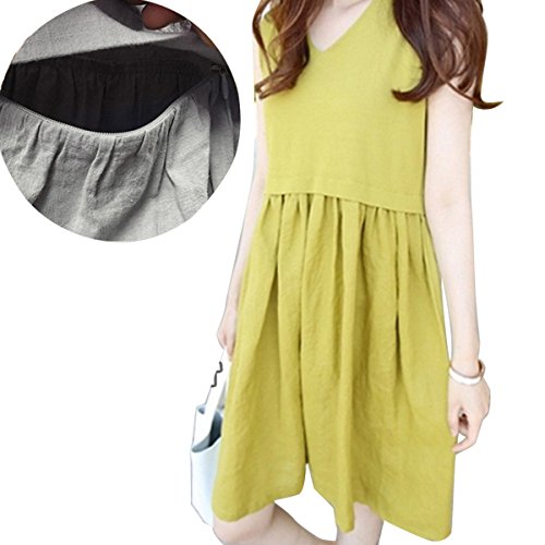 授乳服可愛いマタニティ ウェア ワンピースレディース 授乳口付き [服を 着たまま 簡単 授乳] 赤ちゃん との 外出に! マタニティウェア (L, ライトイエロー)