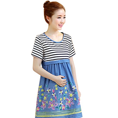 2017年 春 夏 マタニティワンピース レディース カジュアル 授乳服 ママ 可愛い 外出着 妊婦服 ワンピース 授乳服 授乳口付きファスナー (XXL, ネイビー)